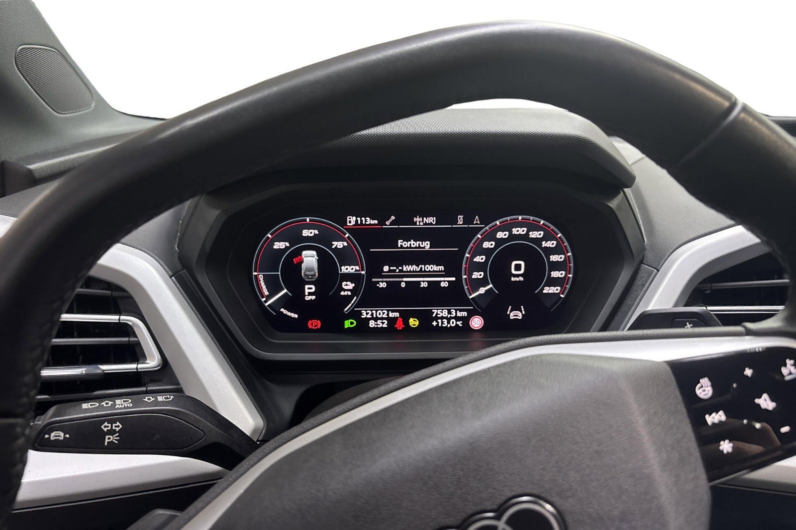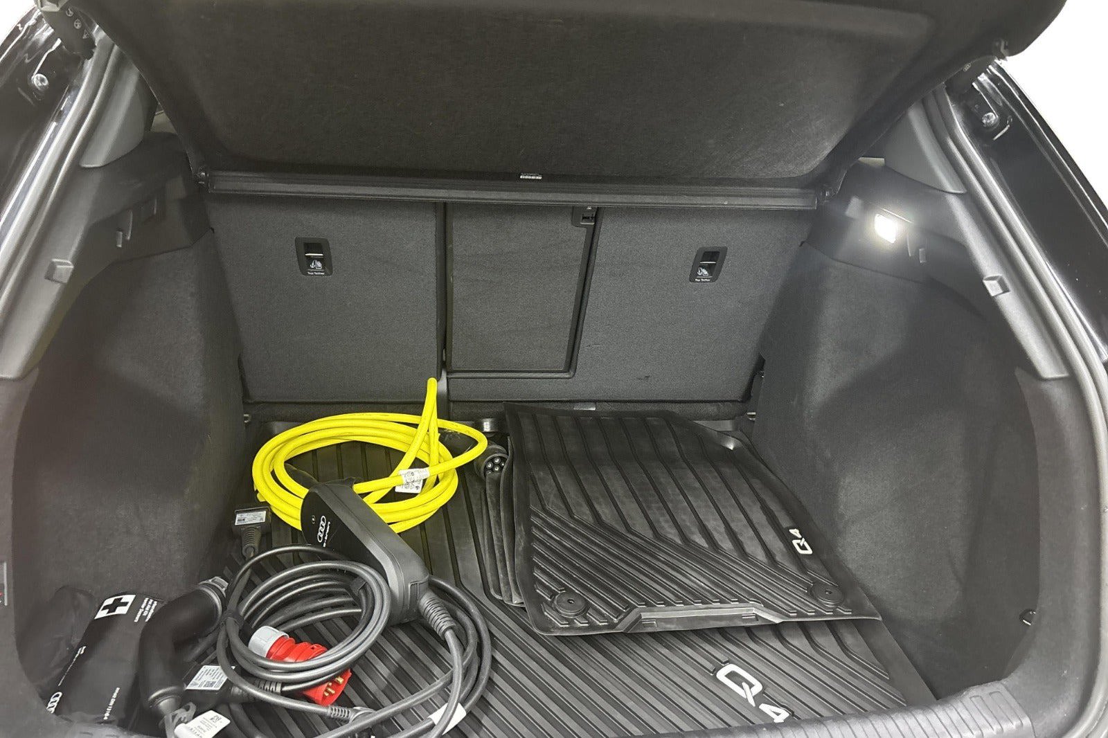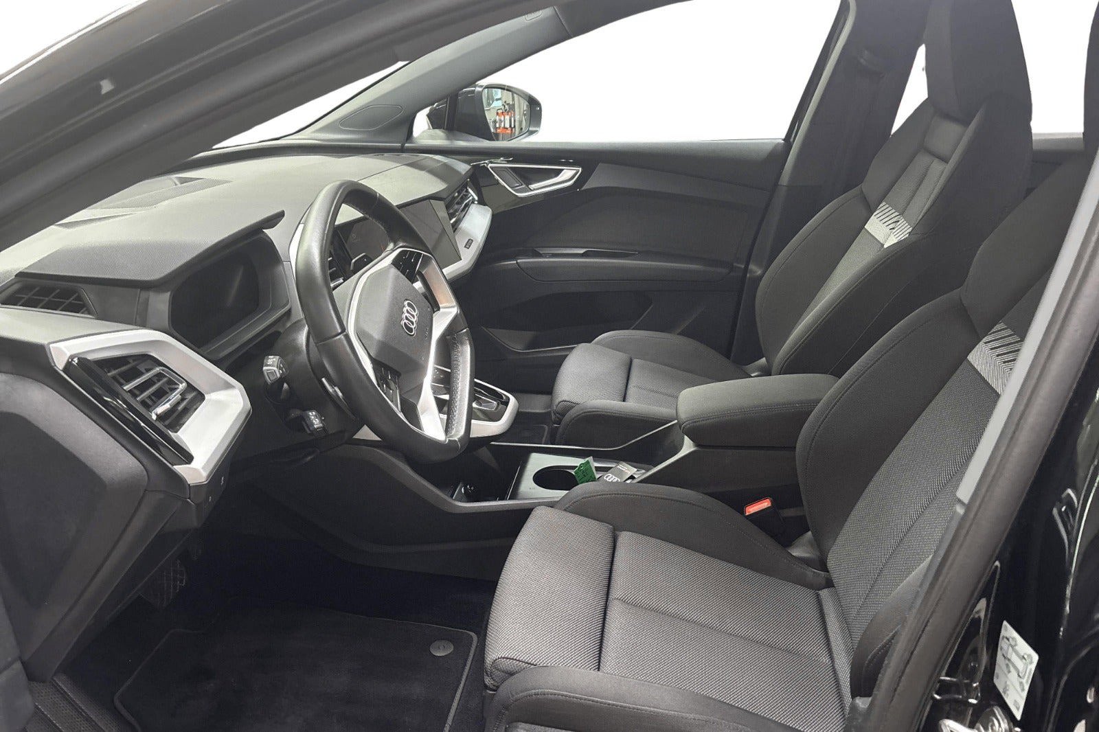 Udvalgt standardudstyr i Q4 e-tron: * Dansk bil med Varmepumpe * LED forlygter og baglygter * Undvigeassistent og drejeassistent * Komfortparkeringsklimafunktion * Klimaanlæg automatisk * Vognbaneafvigelsesadvarsel * Sædevarme foran * 19" alufælge 5-eget design * Audi pre sense front * Audi sound system * Børnesikring, elektrisk betjent * Børnesædefastgørelse i-Size i passagersiden og i-Size og * Top Tether på de yderste bagsædepladser * Dekorindlæg i sort eksklusiv lak * Digital radiomodtagelse * Digitalt cockpit 10,25” * Multifunktionssportslæderrat flad top og bund og skiftekontakter * Forsæder med højdeindstilling * Højglanspakke blanke rudelister * Komfortmidterarmlæn foran * Mode-3-ladekabel * Sidespejle med elektrisk indstilling, varme og indklapning, automatisk afblænding i begge sider * Sidespejlhuse i bilens farve * Splitbagsæde 40:60 * Tagræling blank