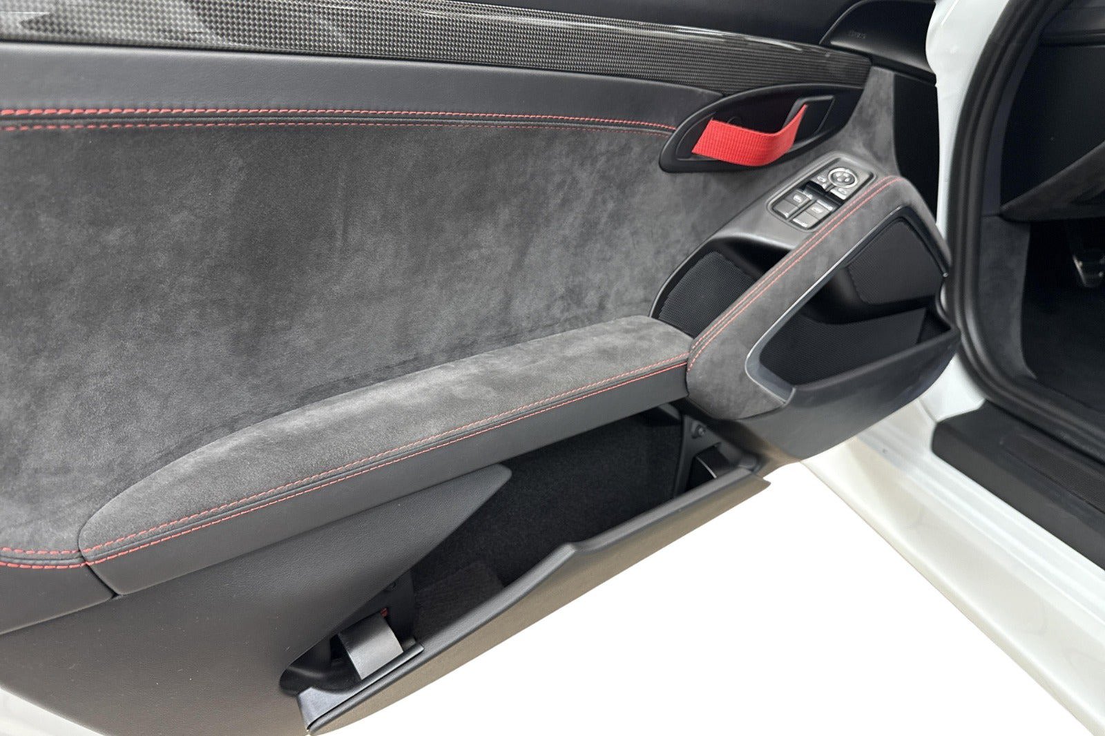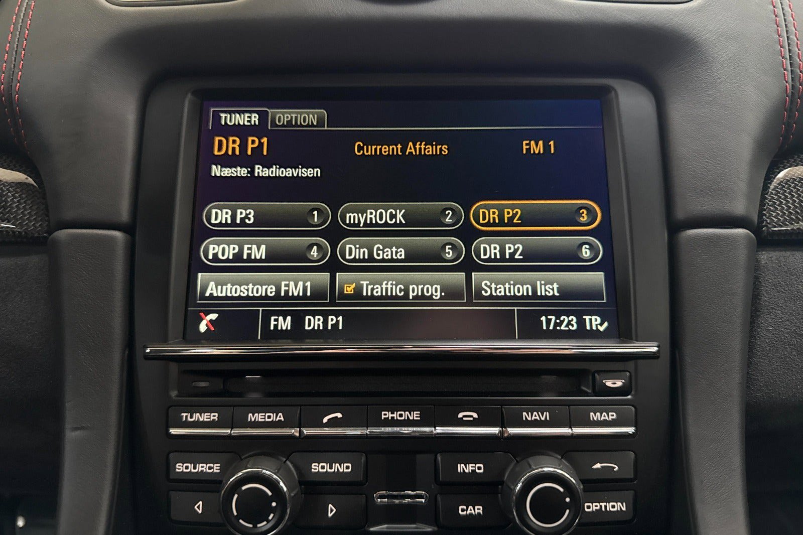 * Farve: White * Porsche Communications Management (PCM) inkl. navigation * Ekstra interiørpakke dørpaneler i kulfiber * Sport Chrono-pakke (udvidet funktion) * Forberedelse til mobiltelefon med Bluetooth * Sædevarme foran * Interiørbelysningspakke / lyspakke * Multimedie smartphone-applikationer (onlinetjenester / apps) * Adaptiv sportssæde inkl. 18-vejs el-justering og memory * Interiørpakke: kulfiber * Dørkarmlister (kulstof) * oplyste * Side-/bakspejle med automatisk nedblænding og regnsensor * Stemmekommando til PCM * Forlygtesprinkler * dæksel lakeret * Forrude med solskærm øverst * Automatisk klimaanlæg * 2 zoner * Sports udstødning * Forhøjet spoiler (standart medfølger)