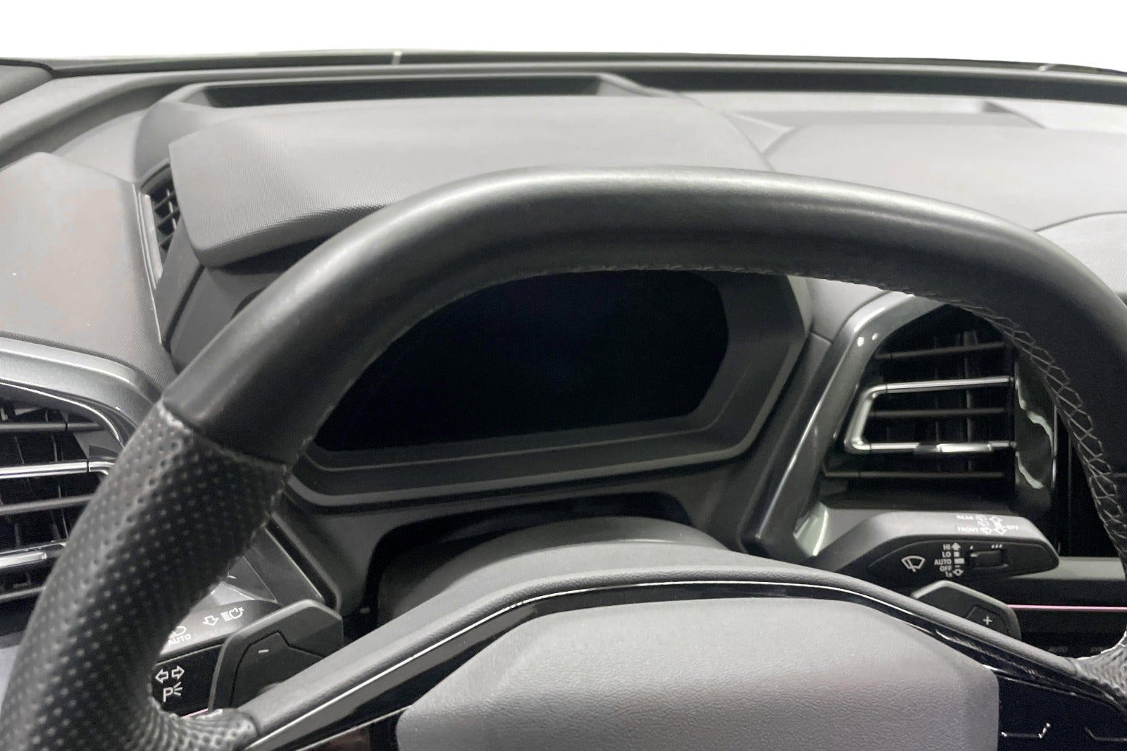 * S-Line interiørpakke, indeholder: - Sportssæder i sort stof-kunstlæder-kombination - S-logo i ratgreb i perforeret læder og med kontrastsyning - Ambientelyspakke i hvidt lys - Panellister med aluminiumsindlæg belyst s-logo - Dekorindlæg i mørkt mat børstet aluminium - Kontrastflader i sort højglans - Aluminiumslook til interiøret - Pedaler af rustfrit stål - Loftbeklædning i sort stof