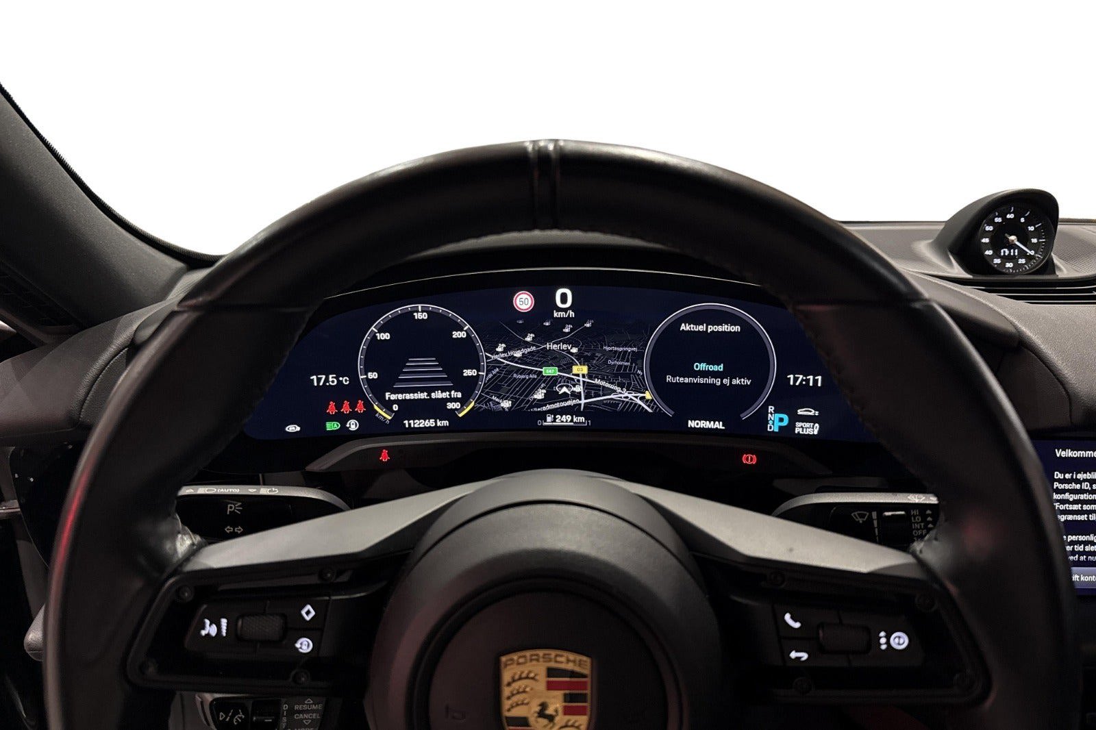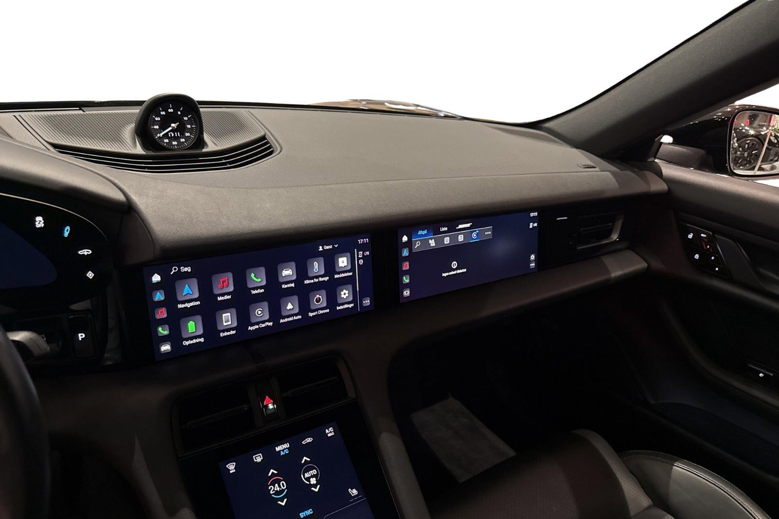 * Porsche Drive inkl. adaptiv fartpilot * 20" Taycan Turbo Aero alufælge * Matrix LED-forlygter * Dynamic Light System Plus * Komfortforsæder med 14-vejs el-indstilling og memory-pakke * Panoramatag i glas * Head-up display * Parkeringsassistent for og bag inkl. bakkamera og 360° surround view * BOSE sound system * Sport Chrono pakke * Mobil ladeenhed “Mobile Charger Connect * Passagerdisplay * Sædevarme for og bag * Vognbaneassistent * Varmepumpe til klimaanlæg * Elektrisk bagklap * Porsche Electric Sport Sound * Mørktonede ruder bag * Sædekonfiguration 4+1 * 150 kW onboard-lader * Sideairbags bagi * Sort højglans rudelister * Ladekabel med Type 2-stik (Mode 3) * El-klapbare udvendige spejle * Smart Range Manager * Servostyring Plus * Opvarmet GT-sportsmultifunktionslæderrat med skiftefunktion * Forrude med solskærm-/toningsstribe øverst * Ladekabel 7,5 m * Electric” logo på dørene * Dør-indstigningslister i sort aluminium med modelbetegnelse |