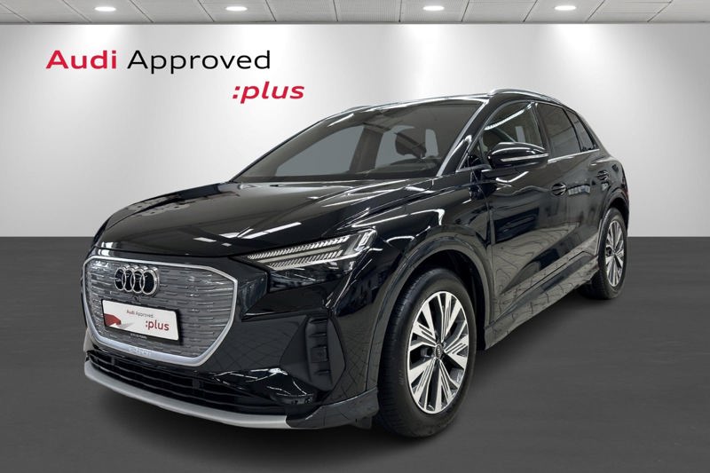 Udvalgt standardudstyr i Q4 e-tron: * Dansk bil med Varmepumpe * LED forlygter og baglygter * Undvigeassistent og drejeassistent * Komfortparkeringsklimafunktion * Klimaanlæg automatisk * Vognbaneafvigelsesadvarsel * Sædevarme foran * 19" alufælge 5-eget design * Audi pre sense front * Audi sound system * Børnesikring, elektrisk betjent * Børnesædefastgørelse i-Size i passagersiden og i-Size og * Top Tether på de yderste bagsædepladser * Dekorindlæg i sort eksklusiv lak * Digital radiomodtagelse * Digitalt cockpit 10,25” * Multifunktionssportslæderrat flad top og bund og skiftekontakter * Forsæder med højdeindstilling * Højglanspakke blanke rudelister * Komfortmidterarmlæn foran * Mode-3-ladekabel * Sidespejle med elektrisk indstilling, varme og indklapning, automatisk afblænding i begge sider * Sidespejlhuse i bilens farve * Splitbagsæde 40:60 * Tagræling blank